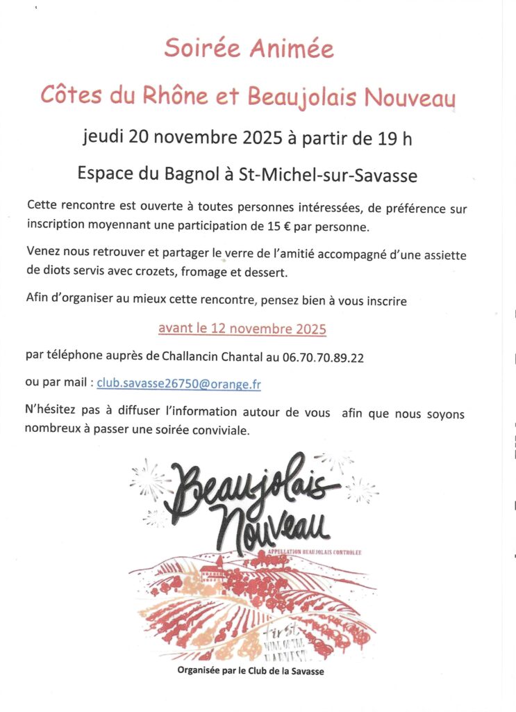 A l’espace du Bagnol à partir de 19h, organisé par le Club de la Savasse.